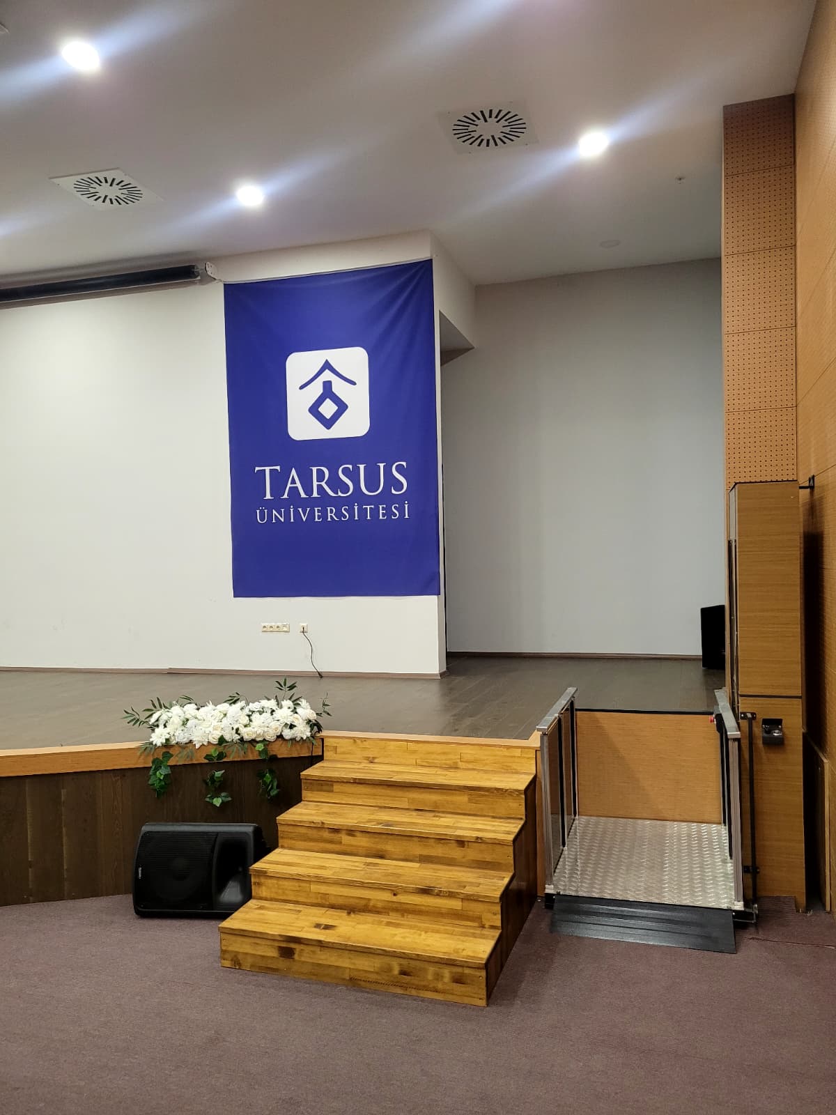 Üniversitemizin Şehit İstihkam Üsteğmen Ozan Olgu Köreke Konferans Salonu sahnesine, engelli bireylerin sahneye güvenli ve bağımsız şekilde erişimini sağlamak amacıyla engelli asansörü kurulmuştur.