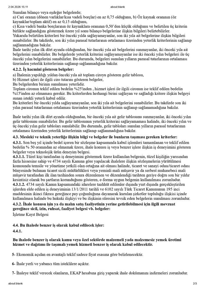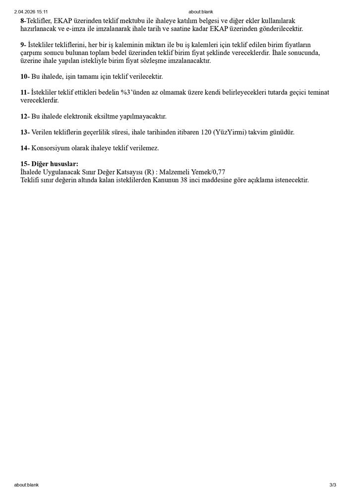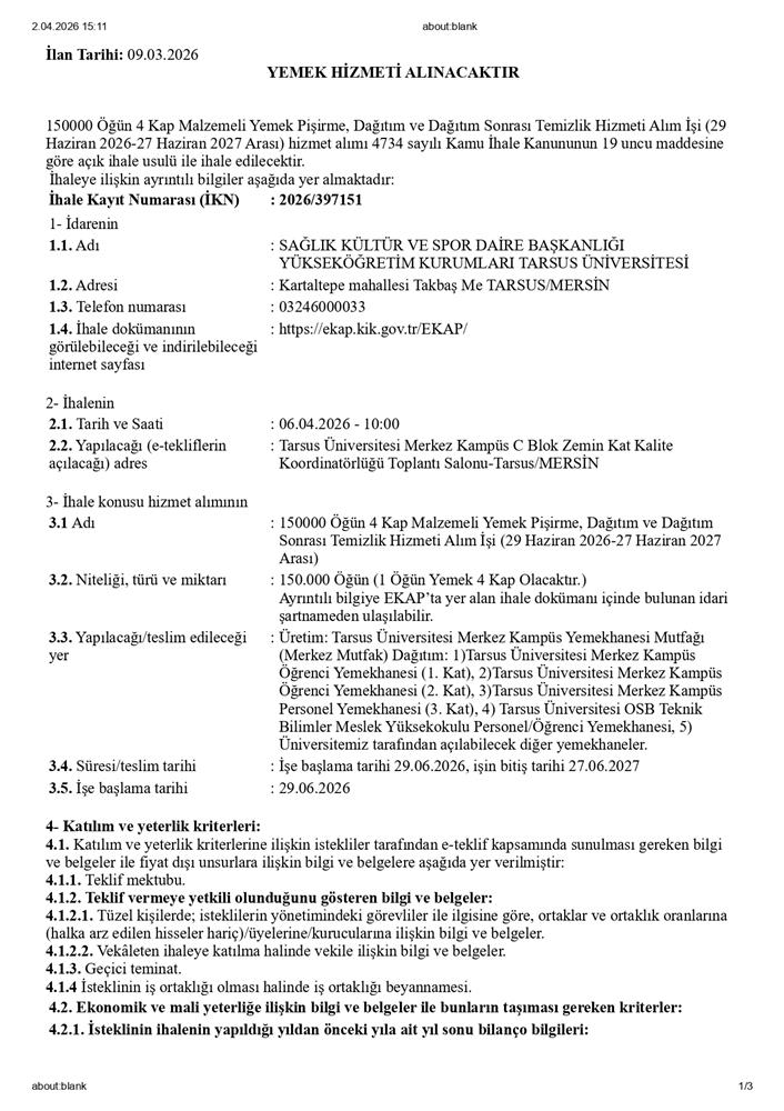 Tarsus Üniversitesi Yemek İhalesi İlanı