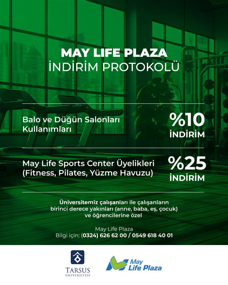 Üniversitemiz ile May Life Plaza arasında personelimizi ve öğrencilerimizi kapsayan indirim protokolü 27.08.2025 tarihinde imzalanarak yürürlüğe girmiştir.